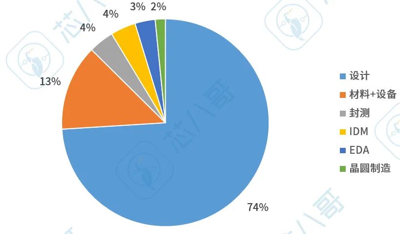 今年上半年,尽管大部分国内半导体融资企业仍然是设计企业,这一比例高达 74%,然而,我们也看到了国内半导体融资向上游挺进的明显趋势,材料和设备企业的比例达到了 13%。2022年上半年国内半导体融资企业所处环节