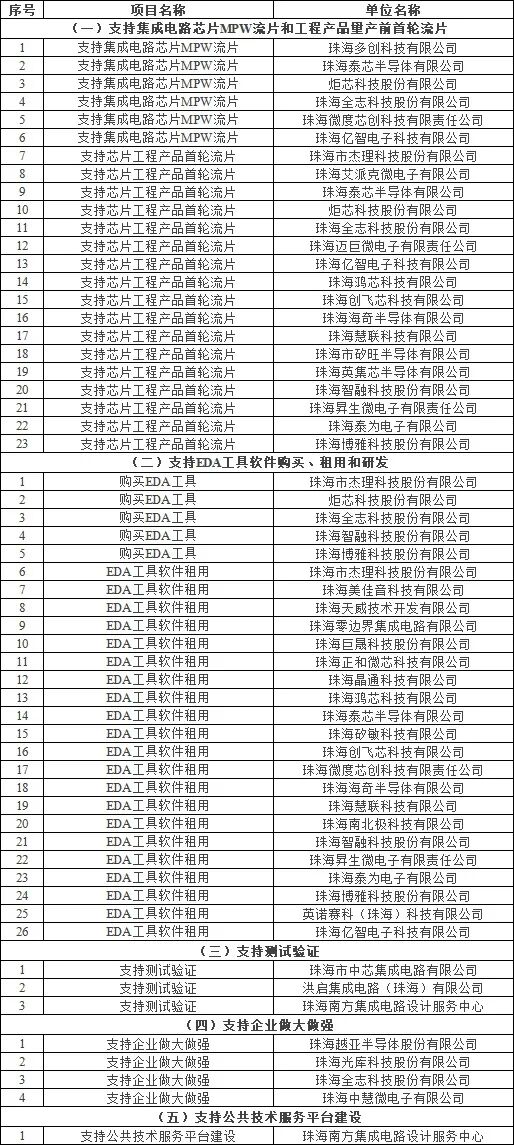附件:2022年度珠海市促进实体经济高质量发展专项资金(促进集成电路产业发展用途)第二批拟支持项目清单