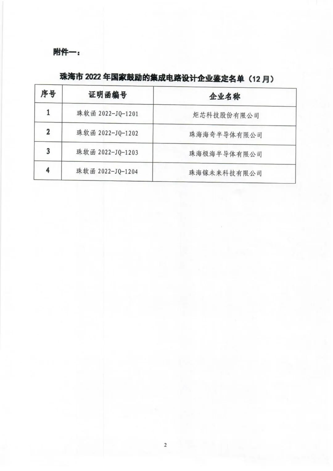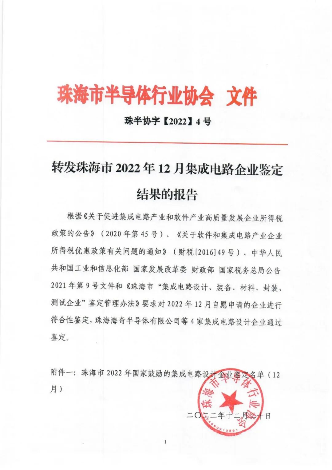 关于珠海市2022年12月集成电路企业鉴定结果的报告