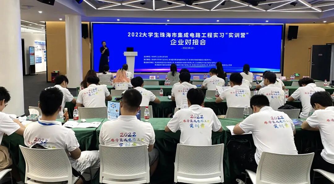 8月22日上午,由珠海市工业和信息化局主办,珠海市半导体行业协会、珠海壁仞集成电路有限公司、珠海南方集成电路设计服务中心执行,珠海高新建设投资有限公司、珠海智融科技股份有限公司、芯动微电子科技(珠海)有限公司、珠海普林芯驰科技有限公司、珠海泰为电子有限公司、珠海妙存科技有限公司、珠海昇生微电子有限责任公司联合执行的2022大学习珠海集成电路工程实习“实训营”企业对接会在高新区港湾一号科创园路演厅成功举办。