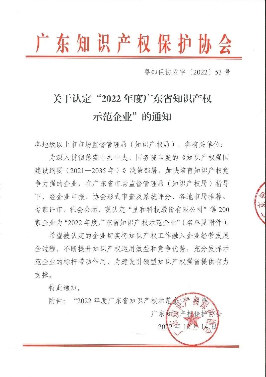 广东省知识产权示范企业是由广东省市场监督管理局(知识产权局)指导、广东知识产权保护协会组织开展,经初审、数据核查、专家评审、社会公示等流程进行认定,是持续推进广东省“知识产权强企”培育工作,加快知识产权强省建设的有力举措。