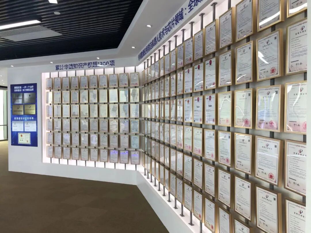 走进一微半导体的展厅, 小编就被一面挂满专利证书的展墙深深震撼到了。“累计申请知识产权超1300项”的鲜明主题,昭示着这家公司难以撼动的行业地位。