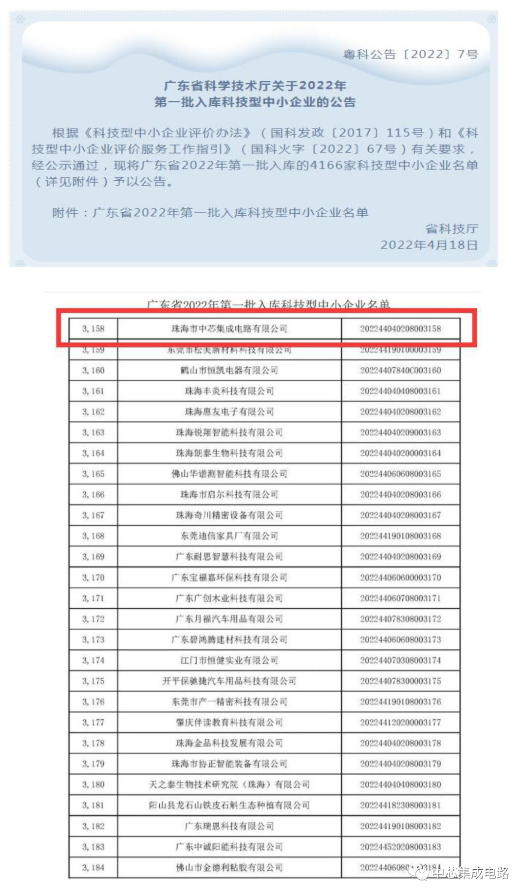 近日,广东省科学技术厅发布公告,关于2022年度第一批入库科技型中小企业的公示,共有4166家企业,本次评定,是中芯科技连续第四年成功入选“科技型中小企业”名单中,证书编号:202244040208003158,此项殊荣不仅是广东省科学技术厅对中芯科技研发与创新能力的认可,也表示着中芯科技拥有自主知识产权、具备自主创新的科技研发实力。