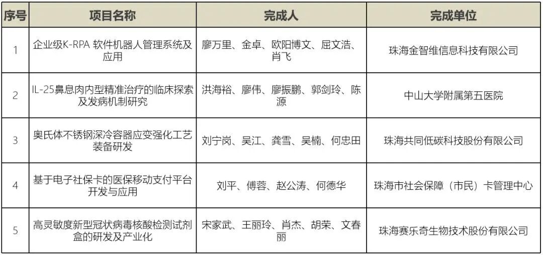 本年度创新珠海科学技术奖授奖名单共评选出科技进步奖特等奖3项、一等奖6项、二等奖10项;自主创新促进奖一等奖2项、二等奖3项、三等奖5项。其中我会4家会员企业上榜!