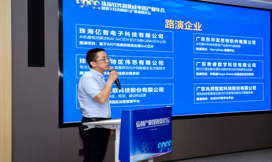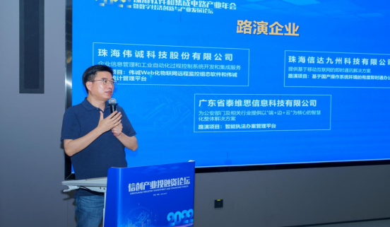会上,珠海亿智电子科技有限公司、广东东华发思特软件有限公司、珠海经济特区伟思有限公司、广东希睿数字科技有限公司、广东飞企互联科技股份有限公司、广东兆邦智能科技股份有限公司、珠海伟诚科技股份有限公司、珠海信达九州科技有限公司、广东省泰维思信息科技有限公司等9家公司进行了项目路演。路演项目涵盖了信创领域几大热门方向(1)国产芯片类:基于AIOT场景的视觉处理SoC芯片;(2)平台方案类:HarryData数据中台、FE智慧园区运营管理平台、基于国产操作系统环境的有度即时通办公软件;(3)安全应用类:安全隔离与信息交换系统;(4)行业应用类:好视道Hope Viewer远程虚实互动系统、ERP数字化平台、智慧统计管理平台、智能执法办案管理平台。