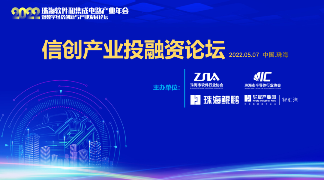 5月7日,2022珠海软件和集成电路产业年会暨数字经济创新与产业发展论坛在珠海金山产业园隆重召开。由珠海市软件行业协会、珠海市半导体行业协会、华为珠海新一代信息技术应用联合创新中心、珠海华发智汇湾运营管理有限公司主办的大会平行论坛“信创产业投融资论坛”同期举行。