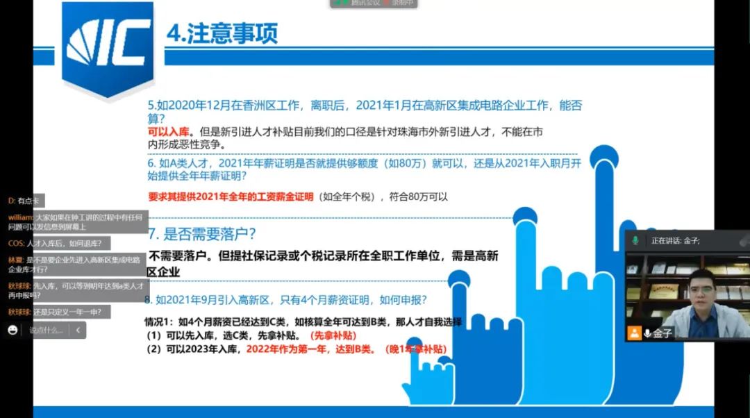为提高高新区集成电路企业对珠海高新区集成电路产业人才政策实施细则和人才入库申报流程的理解,11月21日下午,由珠海高新区科技创新和产业发展局主办,珠海市半导体行业协会承办的2022年度集成电路产业人才入库申报工作培训活动在线上成功举办。60余家集成电路企业共80余人参加了本次线上培训会。