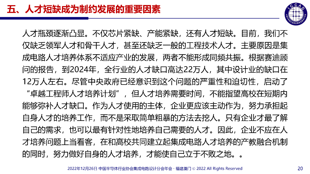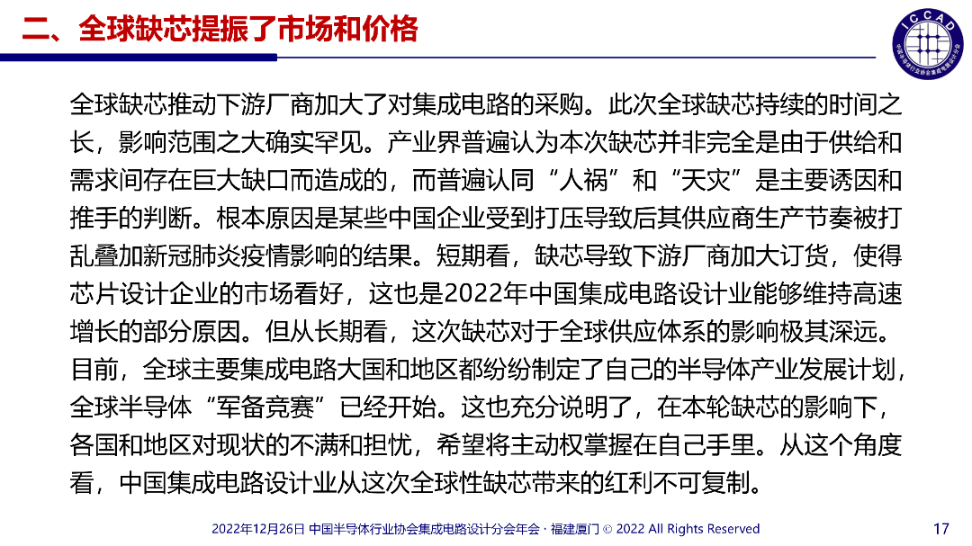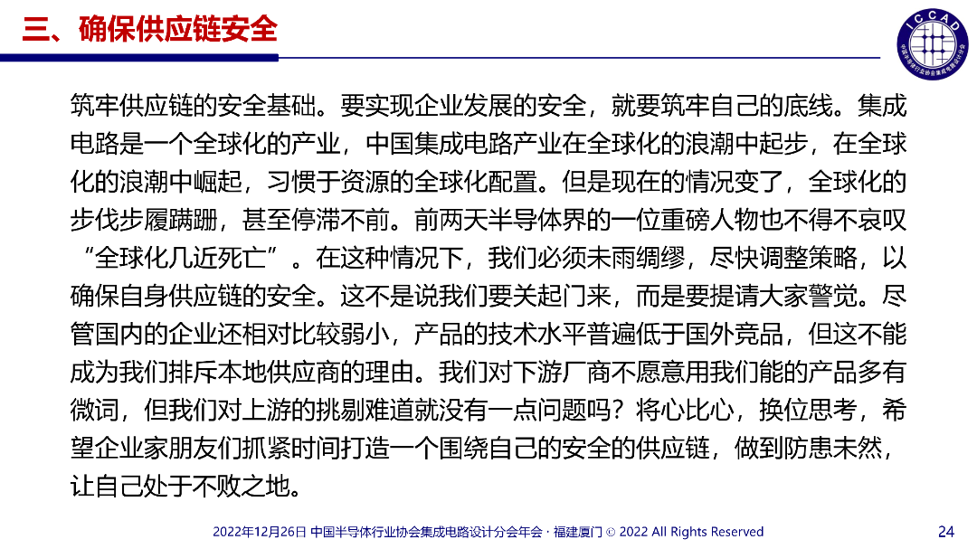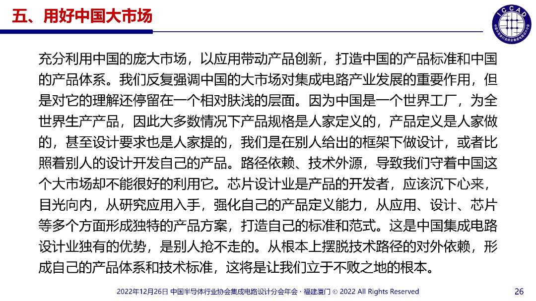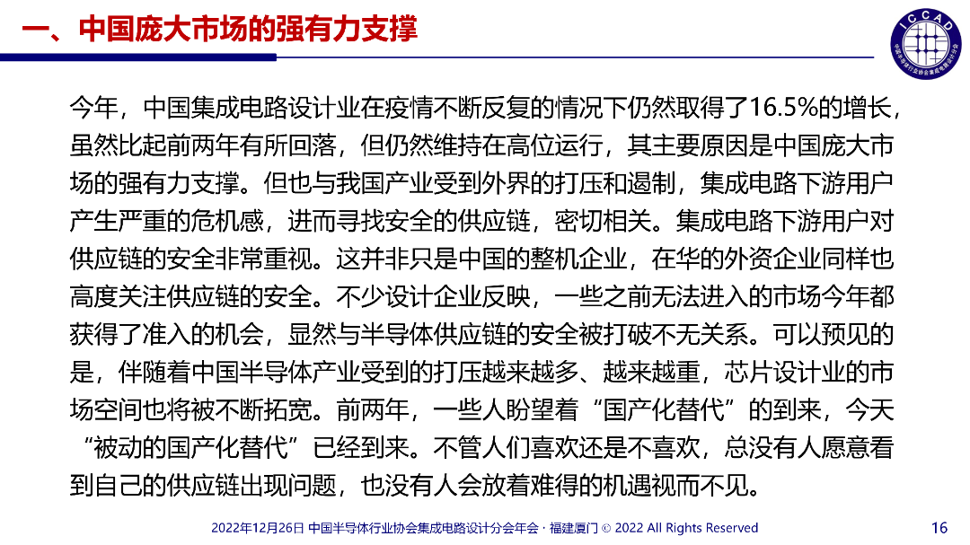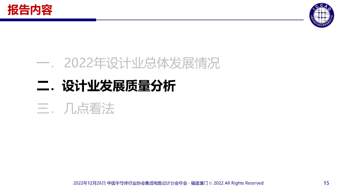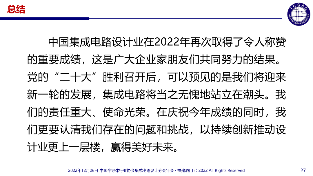 12月26日,由中国半导体行业协会集成电路设计分会、“核高基”国家科技重大专项总体专家组、中国集成电路设计创新联盟共同主办, 厦门市集成电路行业协会、厦门科技产业化有限公司、上海芯媒会务服务有限公司、上海亚讯商务咨询有限公司共同承办,中国通信学会通信专用集成电路委员会、《中国集成电路》杂志社、广州市粤港澳大湾区合芯高性能服务器创新研究院共同协办的“中国集成电路设计业2022年会暨厦门集成电路产业创新发展高峰论坛(ICCAD 2022)”在厦门国际会展中心拉开帷幕。