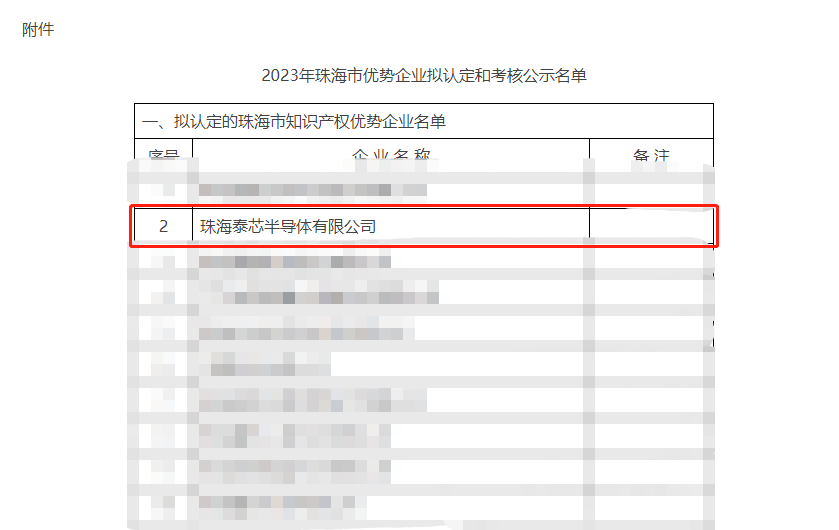 珠海泰芯半导体有限公司获评